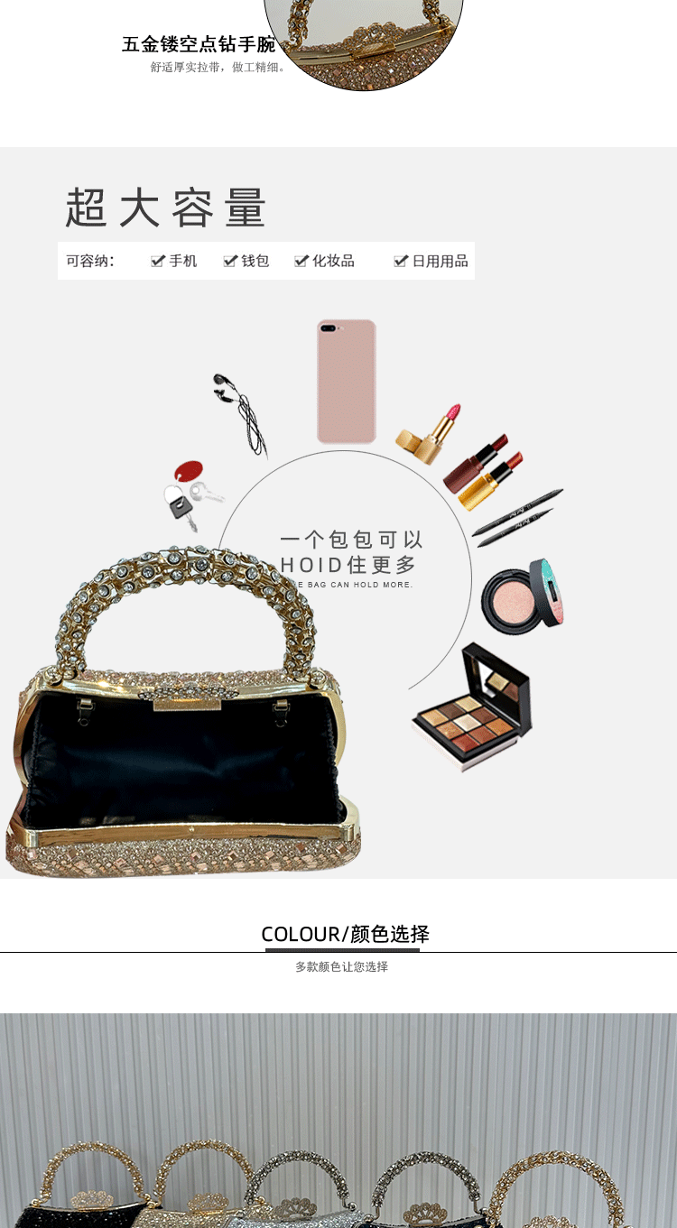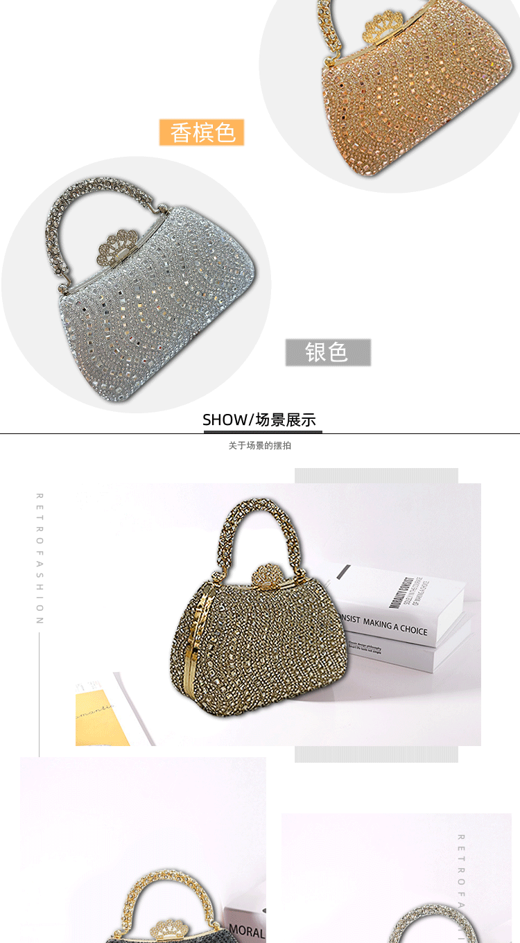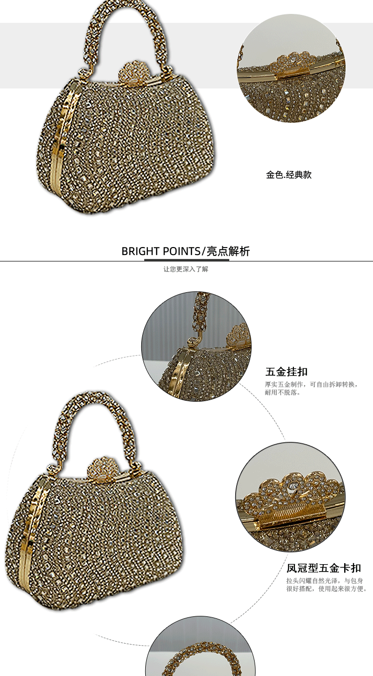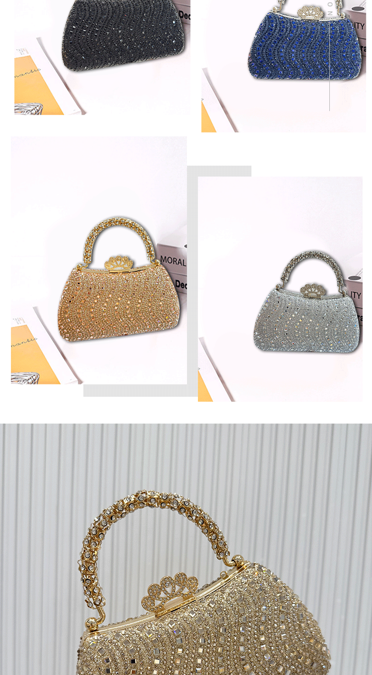 Cross-border buckle diamond-encrusted dinner bag, European and American high-end banquet bag, women's celebrity handbag, shoulder light luxury chain bag